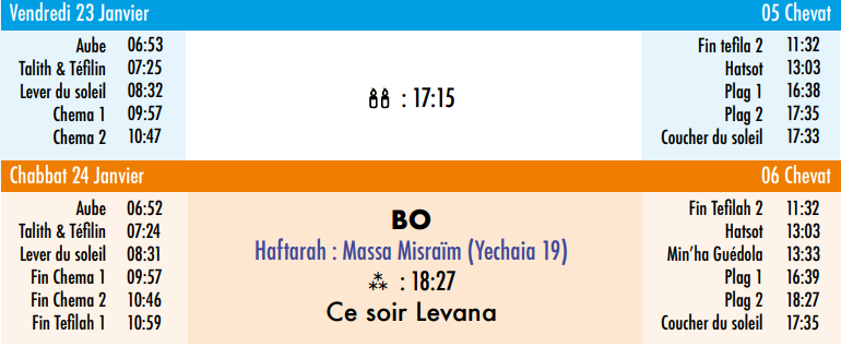Ainsi que l’indique le *Rav David SETTBON* dans la _‘Alé Hadas_, Livre des Minhaguim tunisiens, nous suivons l’avis du _Rambam_ et d’autres illustres décisionnaires comme Rebbi Chelomo Ben Nathan de Sajelmassa et Rebbi ‘Hiya Ben Chelomo ‘Habib de Barcelone. D’autres communautés suivent avec nous ce minhag antique : Djerba, Alger, Irak, Yémen. Le _Rav Kalifa Malka_ témoigne même dans son livre _Kaf Naki_ que tel est l’antique minhag du Maroc. Ce que confirme, en tout cas pour Fès, Rebbi Refaël Benchim’on dans _Ahavat Hakadmonim_. Toutefois, les communautés marocaines d’aujourd’hui ont adopté les haftarot de Chémot et Bo communes au reste des communautés séfarades.