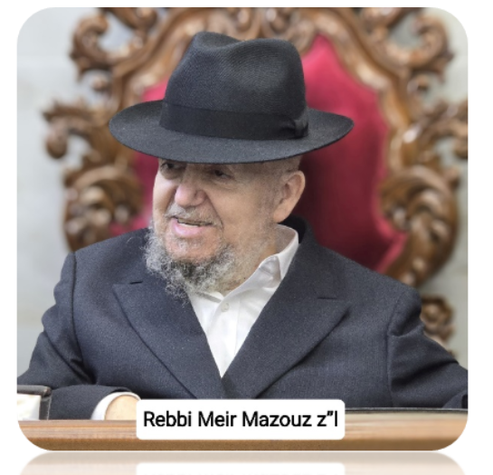 [1] Rebbi Meir Nissim Mazouz (1945–2025) est né le 13 Nissan 5705 à Tunis. Issu d’une noble lignée de rabbins et de justes, il est le fils du célèbre rebbi Maṣliyaḥ Mazouz et de Khamssana (fille de rebbi Ménaḥem Mazouz). Agé de six ans, son père l’accompagne pour étudier à l’école ‘Or Thora’ auprès de rebbi Eliyahou El-Guez. Lorsque ce dernier quitte l’enseignement en 1953 pour siéger au tribunal rabbinique, il est remplacé par rebbi Fradji Uzan. La même année, il bénéficie également des cours de grammaire de rebbi Dawid Berda, qui eut une forte influence sur lui. En 1954, il entre à la yéshiva ‘Ḥévrat HaTalmoud’, où il est formé par rebbi Yiṣḥaq Bouḥnik et rebbi Yossef Soussou Cohen, tout en progressant principalement sous l’influence de son père. À l’âge de 17 ans il commence à enseigner dans la yéshiva Ḥabad-Loubavitch ‘Ohel Yossef Yiṣḥaq’ sous la direction de rav Nissan Pinson. En 1965, Il épouse Esther Louiza Boukhris – descendante de rebbi Ṣiyon Boukhris – avec laquelle il a deux fils et quatre filles. Après l’assassinat de son père en 1971, il monte en Israël accompagné de ses frères, rebbi Ṣémaḥ et rebbi Raḥamim. Ensemble, ils établissent la Yéshiva « Kissé Raḥamim Séfaradite » à Bné Brak. Véritable génie en Thora, et au-delà de ses vastes connaissances dans le domaine de la loi juive, de la Bible et du Talmud, il rédige également des travaux sur des sujets variés tels que la grammaire, l’astronomie, les mathématiques, l’histoire ainsi que la poésie liturgique. Il décède le 21 Nissan 5785, laissant derrière lui une centaine d’ouvrages et des milliers d’élèves.