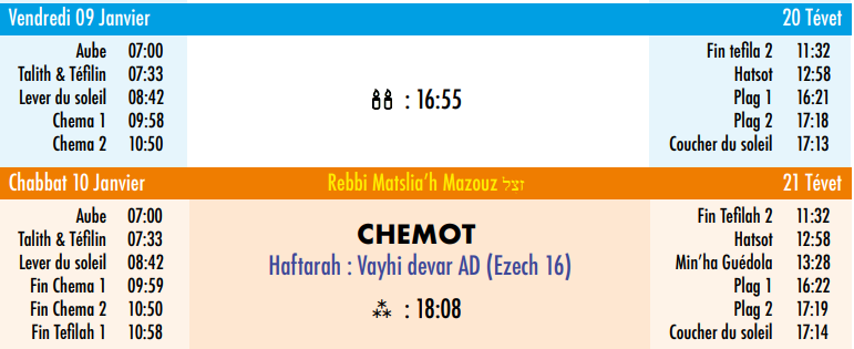 Cours Dispensés par : Taël BOUKHRIS (lecture), Yossef MESSIKA (paracha)
