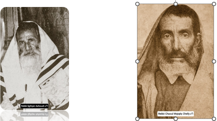 [2] Rebbi Chaoul Mqiqéṣ Chelly (1887–1969) est né sur l’île de Djerba. Il est le petit-fils de rebbi ‘Immanouel Chelly (fils de rebbi Khalfallah) et le fils de rebbi Ma’atouq, connu pour sa grande piété et son engagement bénévole au sein de la Ḥévra Qadisha (confrérie funéraire). Ce dernier, avec son épouse Raḥel, donna naissance à deux grands érudits : rebbi Ḥouita Chelly et rebbi Mqiqéṣ. Il est l’élève de rebbi Dawid (Didou) Cohen. Dès la fin de l’année 1906, il assiste rebbi Yossef Berrebi dans l’enseignement aux jeunes élèves. À la mort de celui-ci, en 1918, il prend à son tour la direction de la yéchiva (académie talmudique) et forme de nombreux disciples, parmi lesquels, rebbi Chelomo Mazouz et rebbi Raphael Khadir Ṣabban. Réputé pour la profondeur de son analyse et la précision de ses propos, il se voit confier de nombreux ouvrages rabbiniques afin d’en assurer la correction et l’annotation. Il est lui-même l’auteur de plusieurs œuvres, parmi lesquelles Midrasho Chel Chem (3 vol.), Karmi Chéli, Chemesh OuMaghen, ainsi que bien d’autres. En 1950, il monte en Israël et s’installe d’abord dans le village de Bérekhya, avant de déménager à Shlomi, dans le nord du pays. Il décède le Chabbat 19 Kisslew 5730 (29 novembre 1969) et est enterré le lendemain dans l’ancien cimetière de Béér-Shéva, conformément à son souhait. Il laisse un fils, Warghani, et deux filles, dont l’une épouse rebbi Ṣghiyer Ashoush et l’autre rebbi Nissim Naïm.