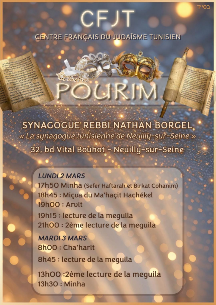 5) REPAS DE POURIM :* 🍽🍷🥖🍾Michté de Pourim (Mardi 3 mars 2026)