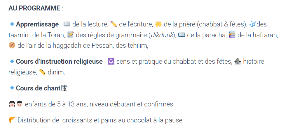 3. Dimanche matin : cours de talmud torah dans notre « keuteb » à la tunisienne