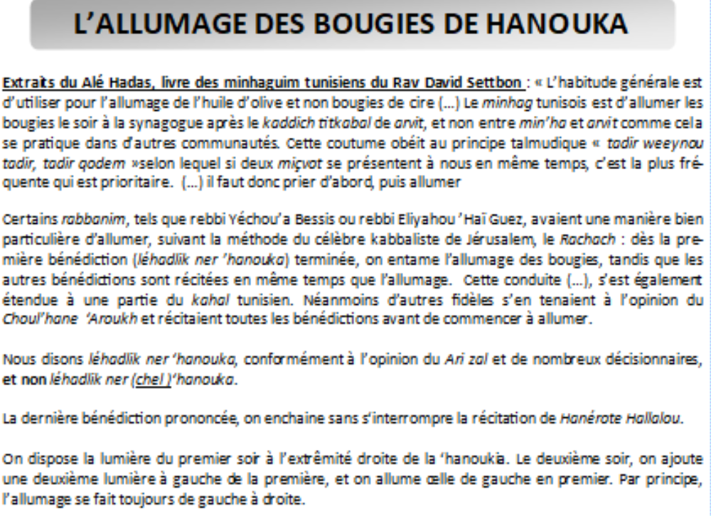 6. Hanouka : dimanche 14 décembre, allumage de la 1ère bougie